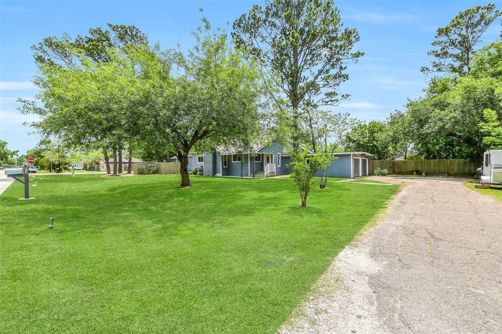 Situated on an oversized corner lot in the established Nicholstone subdivision, this beautifully remodeled home offers 4 bedrooms and 2 bathrooms with approximately 2,070 square feet of living space. The open-concept floor plan features wood flooring, high ceilings, and a cozy fireplace, creating a warm and inviting atmosphere. The updated kitchen includes quartz countertops, stainless steel appliances, and ample cabinet space, perfect for everyday living and entertaining. A versatile upstairs flex space provides the ideal area for a game room, home office, or playroom. Enjoy outdoor living in the expansive, fully fenced backyard with mature trees and plenty of space for gatherings. Conveniently located with easy access to I-45, shopping, dining, and schools.