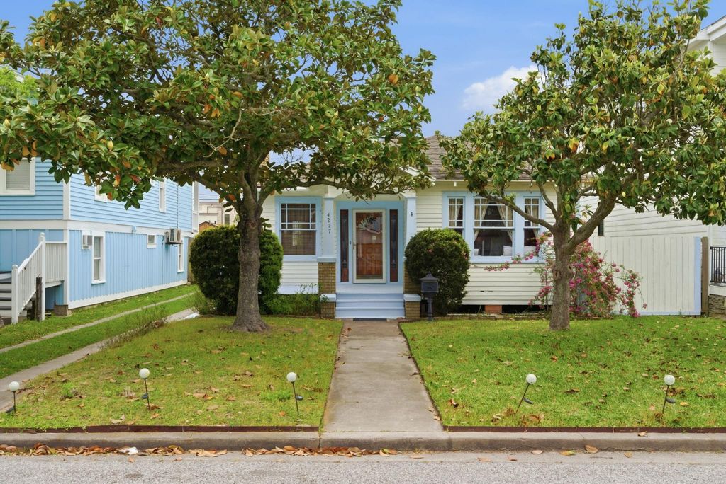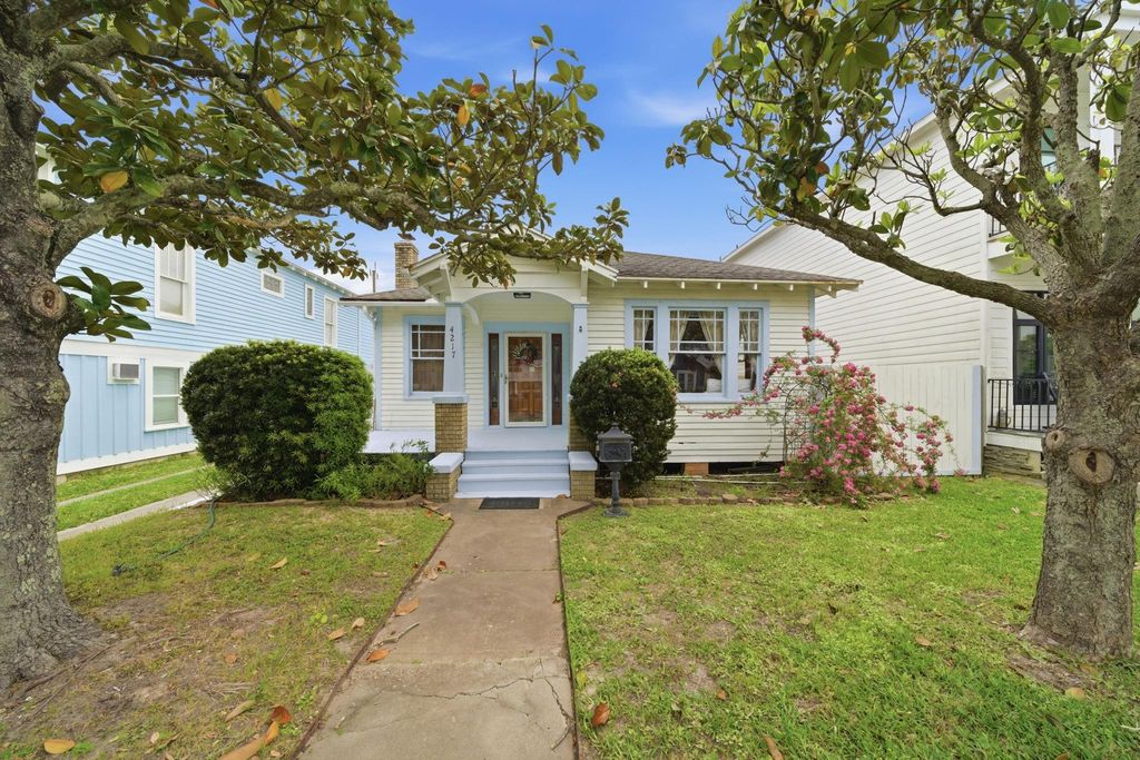 Charming 1960's bungalow just a couple blocks from the Seawall & within walking distance to the beach! Take daily walks on the beach. This coastal gem blends vintage character with thoughtful updates, featuring hardwood flooring & a cozy wood-burning fireplace, & a large built-in bookshelf anchoring the living/dining area. The home offers 2 full bathrooms, including one with a walk-in, jetted bathtub. A 2-car detached garage, gated driveway, & versatile backyard structure-perfect as an art studio, office, guest suite, or private retreat (currently used as a guest room) add to its appeal. Major upgrades include PEX plumbing & a tankless water heater. Enjoy the inviting front porch or unwind on the back porch surrounded by fragrant jasmine. A dedicated laundry/mud room off the back of the home includes a washer and is wired for a dryer. Owner enjoys hanging the clothes to dry in the fresh air. Per owner, this home sits high & dry & has never flooded. Home full of charm & coastal appeal!