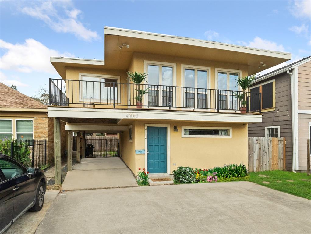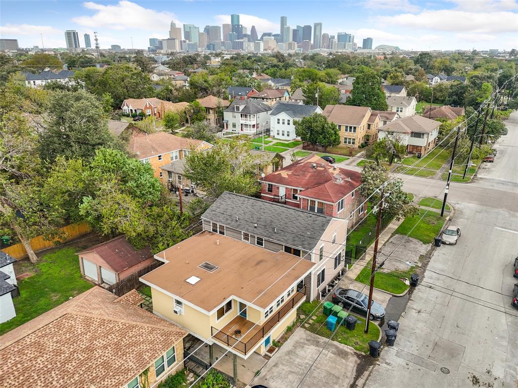 Nestled in the shadows of downtown, just minutes from the Medical Center, Museum District and Montrose, this renovated property includes *updated wiring, *updated plumbing and *updated HVAC systems (*=per previous seller). Home offers all new interior paint, an open floor plan and a sizable backyard! 2nd floor living room features a wall of windows that let in lots of natural light, sizable area offers numerous options for furniture configuration and a door that opens to the deep 2nd floor porch. A breakfast bar separates the Living/Dining and Kitchen areas, Kitchen features upgraded SS appliances, lots of storage cabinetry and plenty of countertop space. Primary Bedroom features recessed lighting, two closets, a ceiling fan and vinyl plank flooring. Flex room on 1st floor is an ideal office space and can double as a 3rd bedroom. Fenced backyard provides access to the exterior storage closet, an ideal place for lawn equipment. Home has NEVER FLOODED and is not in the flood plain!