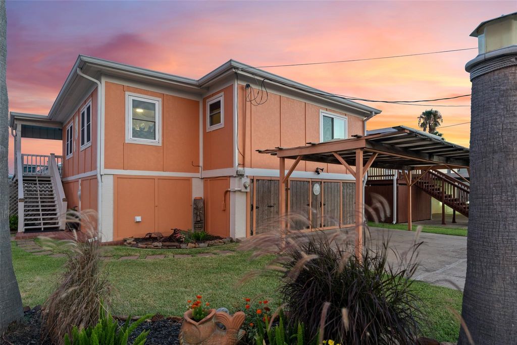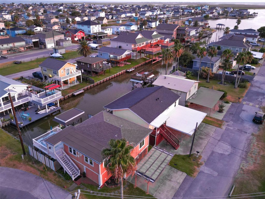 This extensively updated and meticulously maintained Waterfront Home offers a *Boat Lift*, Upgraded *Impact Resistant* Windows that are virtually soundproof, a recent AC system expansion, a whole home water filtration system and a New Dishwasher. Open Kitchen and Living areas allow for easy entertaining and interaction, the floor plan also features all 3 Bedrooms on the main Living Level! Tastefully updated interior offers designer touches throughout including a beamed Living Room ceiling, Walls of Built-in Shelving, Luxury Vinyl Flooring and Crown Molding. Ground Floor offers a half bath (easily converted to a full) and a deep covered patio with built-in table and lots of room for shaded relaxation! Just beyond the patio is the Fishing Pier and Boat Lift and lots of fenced Yard Space. Large Garage with built-in workbench and huge double doors that open to the backyard. **SHORT TERM RENTALS ALLOWED** Neighborhood Pool, Playground & Pavillion! Only 1 hour from Houston!!