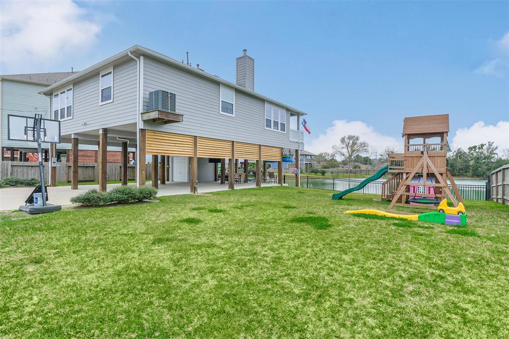 Gorgeous home on the water! Large balcony overlooks the lake & is a wonderful place to watch sunsets. Beautiful solid wood entry door leads you thru the foyer to the open family & kitchen area with a wall of windows offering stunning views. Tile surround fireplace is the focal point of the family room. This huge kitchen is ideal for entertaining, conversations & gourmet meals! 42" cabinets, abundance of low maintenance Silestone countertops, tile backsplash and stainless appliances make this kitchen the heart of the home. Master suite bath showcasing a tiled shower & dual vanity. Outdoor there is an abundance of patio space, floating dock & a ladder to climb up after a swim in the water. Bring your kayaks & lake toys and you'll always feel like you're on vacation! NO FLOODING! This home is a must see!