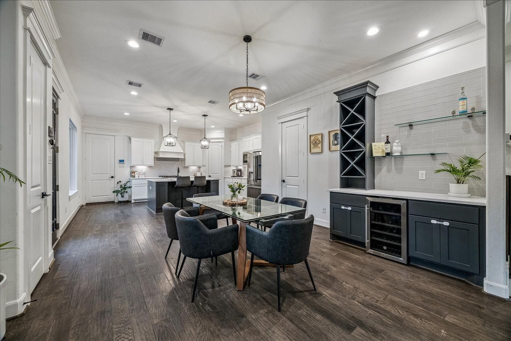 Steps from your favorite pilates and yoga studios, art gallery, and bakery, this beautiful residence places the very best of the community at your doorstep! Inside, downstairs flows effortlessly with rich engineered-hardwood floors throughout. The dining space features a bespoke dry bar, featuring custom cabinetry and an integrated wine refrigerator and is overlooked by the chef's kitchen with high-end appliances and gleaming quartz countertops. Step outside and the backyard becomes your personal retreat - a custom wooden-planked covered patio invites year-round outdoor living, while a plunge pool (heated & cooled) and lush, privacy hedged lawn make it as serene as it is resort-worthy. Upstairs, the primary suite is a sanctuary with vaulted ceilings & a spa bath, and the two additional bedrooms are generously sized and complimented by a flex room, two bathrooms, & the laundry room. Finally, the 2-car garage has been completed with storage & professionally-epoxied floors! DECKED ATTIC!