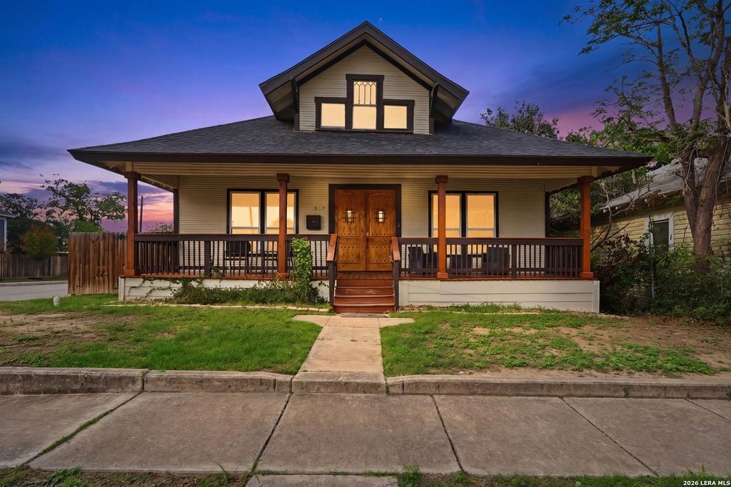 327 W Baylor St is listed for sale at $ 345,000. The Single-Family property has 4 bedrooms, 2 Full Bathrooms, 1 Half Bathroom, 1687 square feet and was built in 1925. The lot size is 0 Square feet. ##BR##On a corner lot with no HOA, this home makes a strong first impression with a large front porch and striking double front doors that set the tone for its thoughtful design and curb appeal. Inside, the layout features an open floor plan enhanced by high ceilings, exposed wooden beams, and recessed lighting, creating a bright and inviting main living space. The kitchen stands out with dark wood cabinetry, quartz countertops, stainless steel appliances, and a stone island offering additional storage and a convenient breakfast bar, combining both style and function. The primary suite features modern sliding barn doors that add a contemporary touch while maintaining privacy and a clean design feel. Outdoor living is extended with a wooden deck that provides additional usable space, while a detached two-car garage adds practicality and extra storage options. Conveniently located with a short commute to downtown San Antonio, San Antonio International Airport, Fort Sam Houston, and Lackland, t