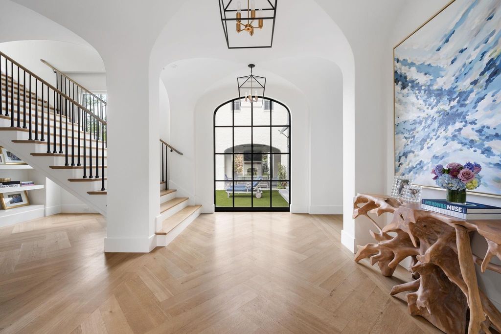 Custom built by Michael S Wilson on a quiet, picturesque block in the heart of Lakewood, this architecturally striking residence reflects an elevated standard of design, craftsmanship, & execution.Antiqued painted brick with artisan detailing & dramatic Lincoln Windows establish a timeless presence, while an arched steel front door—paired with a matching arched steel window overlooking the pool—creates a memorable sense of arrival.A grand floating staircase anchors the entry with immediate visual impact. Interiors are defined by 5” rift & quartered white oak floors, intricate herringbone patterns, smooth-finish walls, & thoughtfully curated architectural detailing throughout.The study-lounge is richly appointed with tailored millwork, a coffered ceiling, & an Isokern fireplace, with a secondary working study discreetly tucked behind—designed to conceal function without compromise. Custom white oak arched doors & extensive millwork carry seamlessly from space to space.The kitchen serves as both centerpiece & workspace, featuring quartzite surfaces, a premium Wolf & Sub-Zero appliance package, & a fully outfitted working pantry. Expansive sliding doors open to a private outdoor setting, creating effortless indoor-outdoor flow.A centrally positioned, fully equipped bar enhances entertaining, connecting to the covered loggia with fireplace & in-ceiling heaters.The primary suite offers a true retreat, highlighted by architectural ceiling lines, refined wall detailing, & a spa-inspired bath with floating tub, steam shower, dual vanities, & a custom closet with makeup vanity.Upstairs,a spacious game room is complemented by en-suite secondary bedrooms with WICs & elevated design continuity.Additional highlights include a secondary staircase, pool bath access, outdoor kitchen, resort-style pool & spa + great grass yard, Control4 automation,& curated landscaping.Ideally located just moments from Lakewood Park & White Rock Lake.Homes of this caliber by MSW are rarely a
