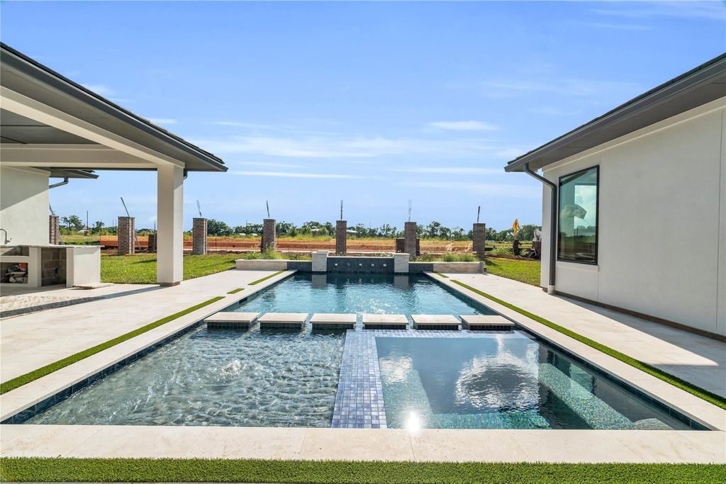 JAMESTOWN ESTATE HOMES MODEL HOME NOW AVAILABLE WITHOUT A LEASEBACK! Contemporary design with 5 Bedrooms, 6.1 Baths, stunning pool and hot tub, AND Split 4-Car Garage. Soaring ceiling in Living Area with glass sliding doors that lead to the Back Porch. Chef’s Kitchen - complete with high-end appliances, a Scullery, and walk-in Pantry. Primary Bedroom features a cathedral ceiling with wood beams, spacious enough for sitting area. Stunning Primary Bath with 67" soaking bathtub, oversized walk-in shower, separate vanities with floating cabinets, and spacious closet. Entertaining Spaces include Media Room and Game Room. All Bedrooms have walk-in closets and Ensuite Baths. Flex Space/Gym has full Bath with direct access to Back Yard - perfect Pool Bath! Whole-home generator already installed!