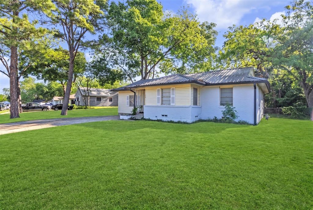 Tucked beneath a canopy of mature trees, this charming ranch-style home offers a peaceful retreat with tons of character. The metal roof, expansive green lawn, and long driveway create excellent curb appeal from the moment you arrive. Inside, you'll find a mix of hardwood and luxury vinyl plank flooring throughout, with exposed wood beam ceilings adding warmth and charm. The updated kitchen features gray shaker cabinets, subway tile backsplash, dark granite countertops, and a gas range — perfect for the home chef. Spacious bedrooms offer flexibility for any lifestyle, and the layout flows naturally for everyday living. The aerial view showcases just how lush and private this lot truly is, surrounded by mature trees that provide shade and seclusion. A fantastic opportunity for owner-occupants and investors alike — don't miss out!