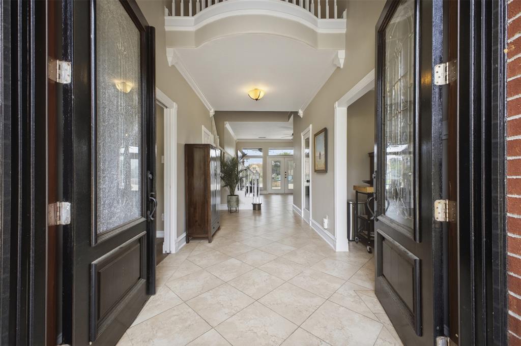 Upstairs, a spacious game room opens to a private balcony with stunning views of the backyard. This level includes four bedrooms, three baths, and access to a third-floor walk-in storage area.