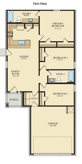 NEW! Lennar Cottage Collection "Brook" Plan with Elevation "A" in Burnet Fields! An exterior features a smart layout that makes good use of the available space. The front door leads into an open concept family room which flows into the dining room and kitchen for effortless transitions during meals or parties. Two bedrooms share a hall bathroom at the front of the home, while the owner’s suite is tucked into the back corner for maximum privacy, along with a full bathroom and walk-in closet. *HOME ESTIMATED TO BE COMPLETE, September, 2023*
