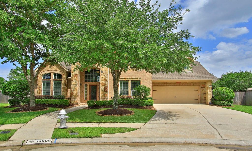 Welcome to this exceptional home in the golf course community of Fall Creek. 14038 Hailey Springs features a full-yard sprinkler system and beautifully designed outdoor living spaces. Enjoy a heated pool and spa, along with an expansive covered patio built with reinforced supports for added stability, plus the convenience of a generator. This spacious home offers both a primary suite and a guest suite on the main floor. Upstairs, you’ll find three bedrooms, a massive game room, a versatile bonus room, and a dedicated media room. The kitchen is a chef’s dream, offering abundant counter and cabinet space, and it opens seamlessly to the impressive two-story great room—perfect for entertaining. The primary suite provides a relaxing retreat with split vanities and separate walk-in closets whirlpool tub and shower. Home office adds both space and functionality. Completing the home is a three-car tandem garage, offering ample storage while still accommodating two vehicles comfortably.