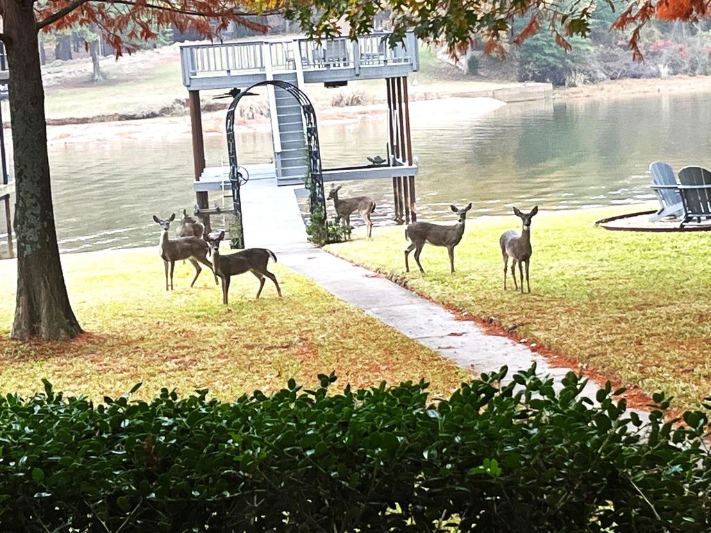 Ultimate Lakefront Retreat! This fully-furnished home offers the perfect blend of luxury and leisure. The open-concept design is anchored by a chef’s kitchen featuring double ovens and an expansive eating bar – perfect for hosting. The massive 23’ x 20’ family room is bathed in natural light and elegant tray ceilings throughout provide a sense of scale and luxury. The living, dining, kitchen and master suite all enjoy water views. Outside the amenities are unmatched: a huge deck for alfresco dining, a lakeside firepit, and a boathouse featuring a party deck and PWC lift. This home is situated on a lush, heavily treed half acre lot providing both shade and privacy. With 97' of waterfront and located on a protected wide channel, you can enjoy calm waters and boating in any season. You will also find an oversized 20’ x 30’ garage with plenty of room for two cars and a golf cart to cruise the neighborhood. Bonus: No HOA and STR eligible!