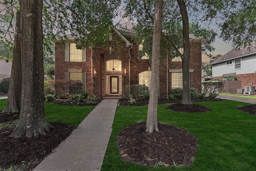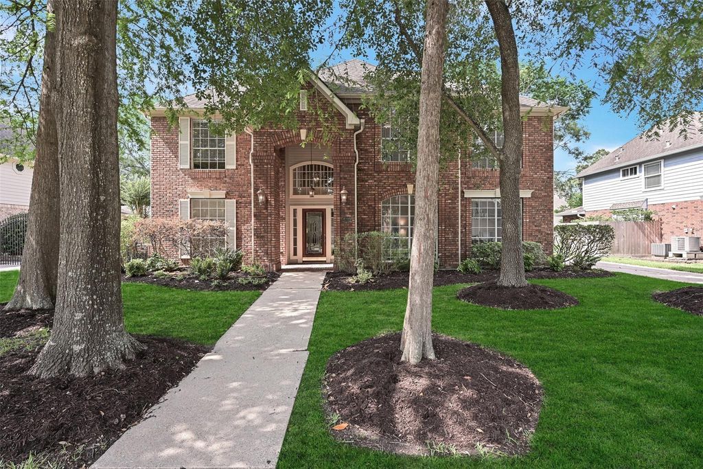 Light, bright, spacious, & move-in-ready two-story home on a quiet tree-lined cul-de-sac street in Clear Lake's Brookwood community! Towering trees & manicured landscape beds set the stage for this inviting 4-bedroom home with fresh neutral paint, handsome wood floors, updated lighting, & a flexible floorplan that includes a formal living & dining area, a roomy family room with a soaring two-story ceiling, a wet bar, gas fireplace, & a wall of windows, & an updated kitchen with granite counters, freshly painted cabinetry, & a new smooth glass cooktop. The first floor owners retreat boasts an updated bath with a jetted tub & a seamless glass shower with dual showerheads. Upstairs, find a loft style gameroom & 3 additional bedrooms, complete with built-in desks & shelving. Outdoors, enjoy the shady backyard with a wood deck, mature trees, & established landscaping, or take advantage of the community pools, parks, & trails.