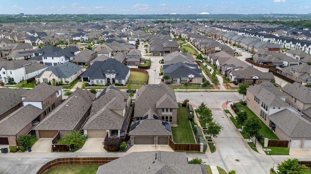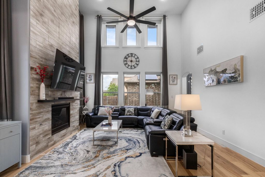 Welcome to a renovated home where timeless architecture meets modern luxury and thoughtful design. From the moment you arrive, the striking brick and stone façade, arched entry, and lush landscaping set an impressive tone. Inside, soaring ceilings, rich hardwood floors, and a sweeping curved staircase create a grand yet inviting first impression. Designed for both everyday living and effortless entertaining, the light-filled open-concept living area showcases a dramatic floor-to-ceiling fireplace and seamless flow into a stunning chef’s kitchen. Here, you’ll find a statement quartz waterfall island, custom cabinetry, Signature collection stainless steel appliances with commercial grade range and vent hood, convection microwave -with built in air fryer- and oven, designer lighting, and a spacious walk-in pantry—equal parts beauty and function. The dining area has a dry bar with under cabinet lighting and extra storage, perfect for a coffee bar. A dedicated home office with custom built-ins offers a polished and productive workspace, while the upper level features a versatile game room and a true media room, perfect for movie nights and gatherings. The expansive primary suite is a private retreat, featuring vaulted ceilings, abundant natural light, and a spa-inspired ensuite with a freestanding soaking tub, oversized shower, separate vanities, and walk in closet. Every detail has been thoughtfully curated—from stylish finishes and abundant storage to a well-appointed laundry room with room for stacked washer and dryer, water filter and softener, to a 3 car garage with extra storage space—creating a home that is as functional as it is beautiful.