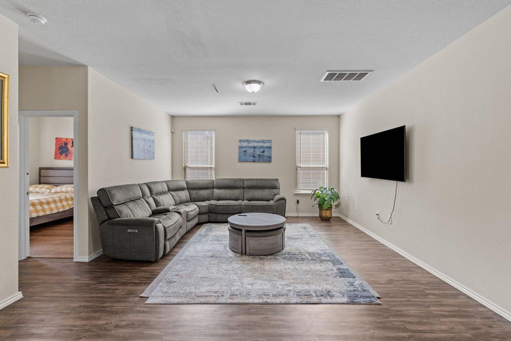 Beautifully designed 4-bedroom home located in the highly sought-after Klein ISD. Featuring an open-concept floor plan, perfect for both everyday living and entertaining. The spacious kitchen seamlessly flows into the family room, making it easy to stay connected while preparing your favorite meals. Designed with functionality in mind, this layout includes 3 full bathrooms, with one bedroom downstairs—ideal for guests or a home office, while three additional bedrooms and two baths are upstairs, along with a large game room for added flexibility. Enjoy 9-foot ceilings throughout d first floor, creating an airy and inviting atmosphere. Step outside to a generously sized, low-maintenance backyard complete with a sprinkler system, rain gutters, and a covered patio perfect for relaxing or entertaining outdoors. Conveniently located near shopping, dining, and major highways, including I-45 and the Grand Parkway, this home offers both comfort and accessibility. Schedule your showing today