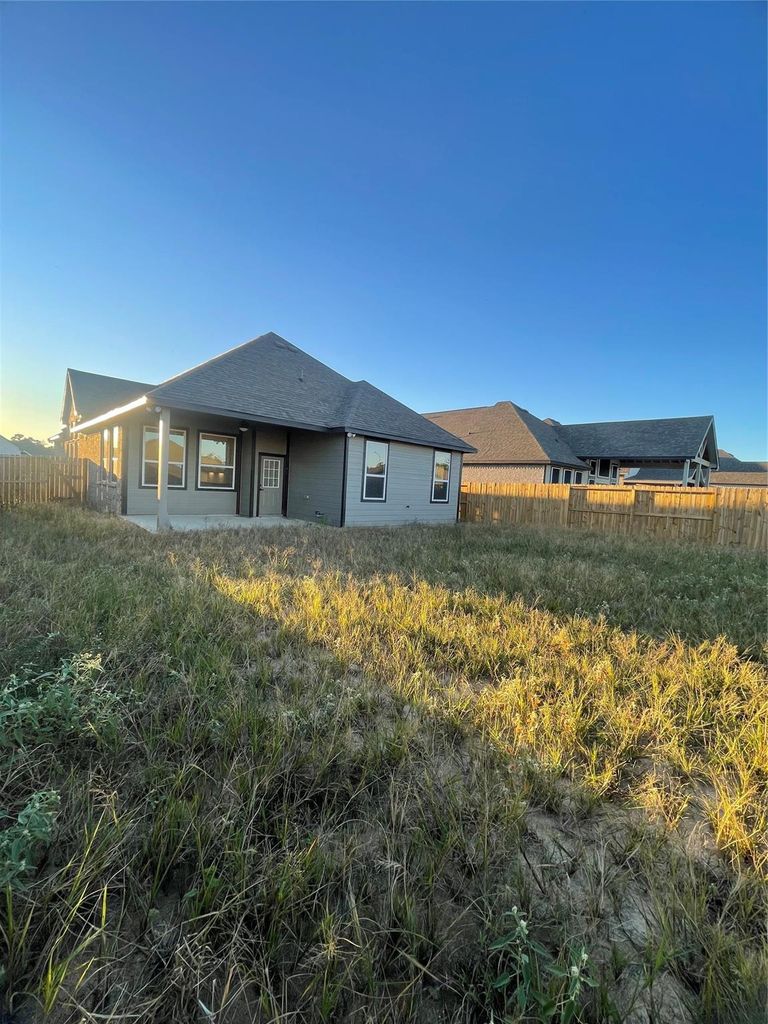 Beautiful new construction by Thomas Kade Homes in Cypress Point, Anahuac! This 1-story home offers 3 bedrooms, 2 baths, and a 2-car garage. Features include neutral colors, wood-like tile flooring, carpet in bedrooms, high ceilings. Kitchen is a chef's dream!Open-concept kitchen boasts custom white cabinets, granite countertops, stainless steel appliances, abundant counters. Kitchen opens to a spacious living and dining area with lots of natural light. The primary suite offers a gorgeous bath with dual sinks and a large walk-in closet. Enjoy the covered front porch, large back patio, and spacious yard—perfect for relaxing or entertaining. Easy access to I-10 for a quick commute. Quality craftsmanship and modern finishes throughout! Call for your private showing!