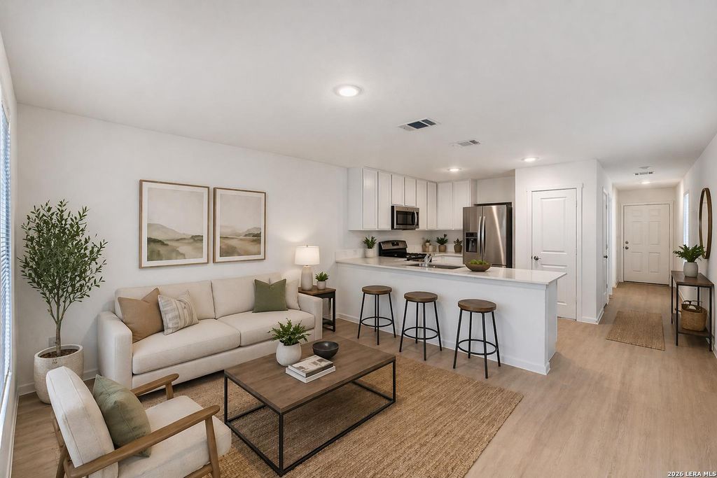 Beautiful brand new 3-bedroom home for lease. This new construction home features an open-concept layout that maximizes space and functionality. Upstairs, you'll find all three bedrooms, providing privacy and separation from the main living areas. The primary suite includes a bathroom and walk-in closet. This home has a one-car garage and offers low-maintenance living perfect for first-time renters or small families. Conveniently located near 1-10, 1604, and Randolph Air Force Base. Refrigerator will be installed prior to move in, washer and dryer connection available. Schedule your showing today!
