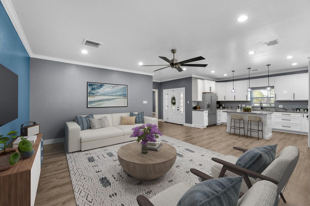 NO HOA, JUST FREEDOM!—and even a custom solar-lit mailbox to welcome you home. Step into luxury with this stunning brand-new construction home. From the moment you enter, you'll notice attention to detail at its finest—featuring 9-ft ceilings and elegant wood laminate flooring throughout. The open-concept layout flows into a dream kitchen with granite countertops, a stainless steel gas stove, custom vent hood, built-in spice rack, Lazy Susans, and even a charging station with outlets in the kitchen island. All cabinetry features self-leveling heavy-duty hardware for durability and ease. Retreat to spa-like bathrooms with all-tile showers, premium fixtures, and granite counters. Enjoy custom closets, a covered patio with gas hookups for grilling, and a large fenced backyard with French drains and full gutters for optimal drainage. Stay cool with a powerful 4-ton Trane AC. This one checks all the boxes—come see it before it’s gone!