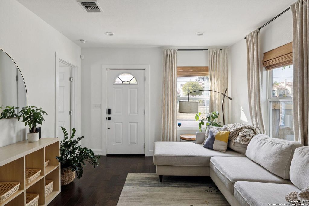 Petite and perfect! This "cutie cottage" sits blocks from the Botanical Garden and Broadway corridor. Smart design makes it feel surprisingly spacious. Xeriscaped front and back yards mean low-maintenance living for any stage of life. Inside, the bright, airy layout features a spacious kitchen with full-sized appliances and floor-to-ceiling cabinets that make the most of every inch. It feels like new construction (hello, double-paned windows!) wrapped in a charming 1910 shell. Two roomy bedrooms each offer walk-in closets, while the bathrooms impress--a hall bath with tub/shower and a primary suite with double vanity and seamless walk-in shower. Out back, a raised deck is ready for entertaining, and a shaded focal wall hides a handy storage shed for bikes and tools. A rare Mahncke Park gem across from Ft. Sam--proof that great things come in small packages!