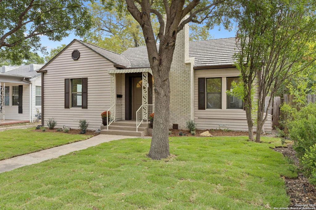 Priced over $14,000 below Bexar County assessed value! This beautifully updated 2 bedroom, 1 bath home offering 1,295 square feet of character and charm. Built in the 1934, this residence blends original details with thoughtful upgrades. Step inside to find original hardwood floors throughout and plaster walls that gently curve into the ceiling, showcasing the craftsmanship of a bygone era. Double pane windows allow abundant natural light to fill every room. The inviting living room features a cozy fireplace and flows seamlessly into the separate dining room. The kitchen features custom cabinetry and cleverly integrated under counter laundry to maximize space and efficiency without compromising on style. Outside, this home sits on a generously sized lot with multiple spaces designed for entertaining, including a screened-in gazebo. The backyard is a true blank canvas, ready for a garage, a casita, a pool, or all three. There's plenty of room to make it your own. Located convenient