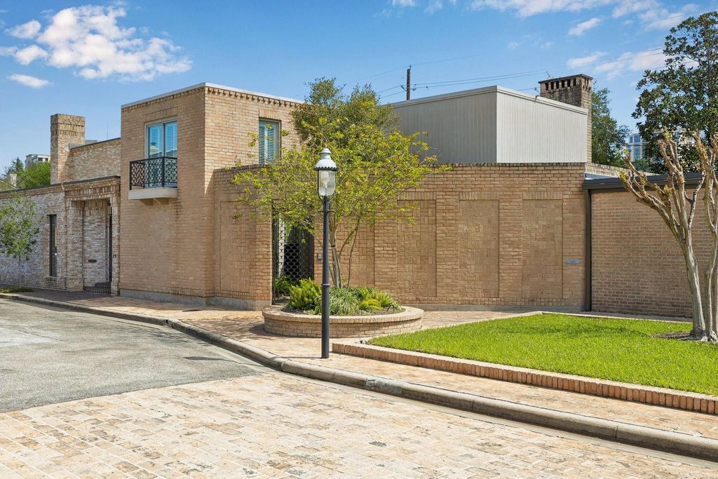 Architecturally significant townhome developed by renowned architect, Preston Bolton. One of the first townhome developments in the area and an adaptation of Miesian courtyard homes. Built around lushly landscaped courtyards with floor to ceiling windows. Formal living and dining rooms adjoined by extra gathering space. Large family room with brick accent walls, fireplace and adjoining home office. Well-designed cook's kitchen with eating bar. Pretty primary bedroom with adjoining library/sitting room, primary bath, vanity, separate tub and shower. Many updates including kitchen and baths. Two additional bedrooms up. Gated community with neighborhood pool. Elevator. All info per Seller.