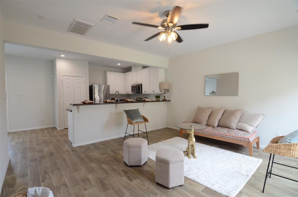 Step into luxury and convenience at 2201 Naomi Street #A! This stunning freestanding home offers sought-after 1st-floor living with 2-3 spacious bedrooms, 2.5 bathrooms, and a versatile Game-room (perfect for a third bedroom or a home office). The oversized gated yard, complete with a concrete patio and turf, provides an ideal outdoor space for relaxing or entertaining. Enjoy modern upgrades like a brand-new roof (February 2025), sleek wood tile floors, and premium appliances replaced in 2022, including microwave, dishwasher, and stove. The new AC coil (2024) ensures comfort year-round. Remodeled with luxury finishes, fresh paint, and meticulously cleaned carpets, this home shines inside and out. Located in a secure gated community, you'll benefit from quick access to 610 & 288 and proximity to UT Dental School, the Medical Center, NRG, and Downtown. Parking right in front of your home adds extra convenience, and washer, and dryer.