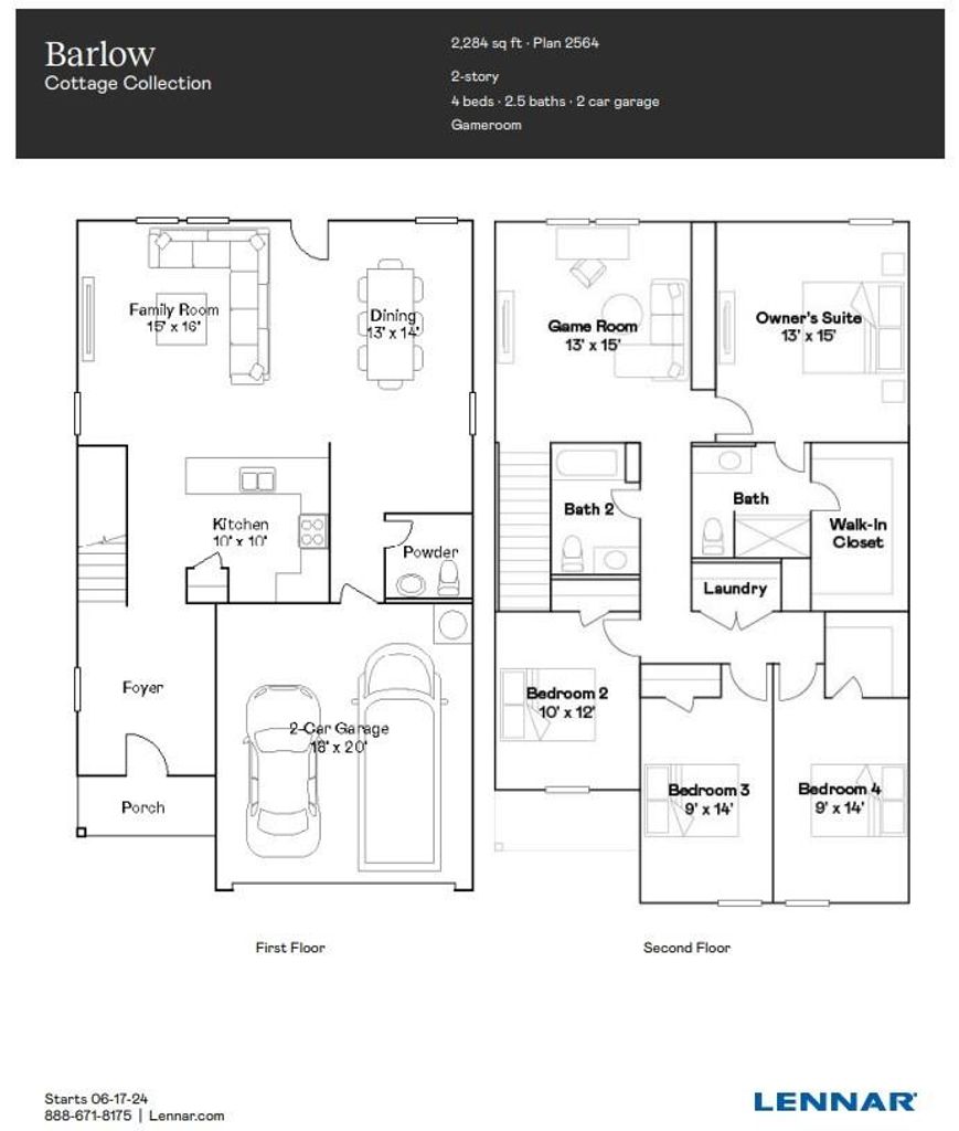 NEW! Lennar Core Cottage Collection "Barlow" Floor Plan with Elevation "J4" in Cypress Green! This new two-story home is host to an open-concept floorplan on the first level combining the kitchen, dining area and family room for effortless entertaining and multitasking. A versatile game room is located upstairs near four bedrooms, including the luxe owner’s suite with a spa-inspired bathroom and generous walk-in closet. A two-car garage is included.