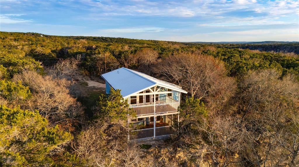 There's a version of your life that starts with a bluff above the Blanco River, just over 3 acres of Hill Country quiet right outside Wimberley. Whether that's your every day or your every weekend is entirely up to you. The main house is designed for the way people actually live: gather, cook, unwind and wake up to a view worth waking up for. Overflow guests have their own detached, climate-controlled sleeping quarters-a vintage themed room with covered porch and mini-split, perched on a trailer! Can be sold completely furnished including a great multigenerational setup with 4 adult twin XL bunk beds along with two other complete bedroom suites, comfortable living, dining and outdoor living room furnishings. Multiple covered porches open up to views of the winding Blanco and beyond. A private footpath winds down to the riverbed, steep and rugged in true Hill Country fashion. The Blanco runs seasonally here, which is part of its character and when it's up, it earns the drive. When not, this is a hiking, climbing and exploration paradise. Beyond the bluff, Wimberley's trails, swimming holes and open ranchland make every direction worth traversing. A $70/year HOA unlocks Burnett Ranch Water Park's swimming holes, including the southern river park swim hole, reliably refreshing even through recent droughts. When you're not here, the property works for you. A 4.95/5 Airbnb rating across 75 reviews reflects a guest experience that books on reputation alone(financials available). Included shipping container handles owner storage discreetly, out of sightlines. Internet is cellular-based, guests come here to unplug, and they love it for exactly that reason. This listing covers Lot 30 (3.033 acres) with the main house. An adjacent 2.760-acre lot is available as well, inquire about acquiring both for combined 5.81 acres of bluff-top serenity.