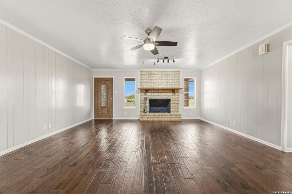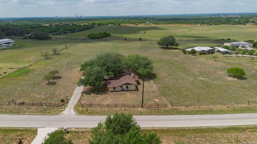Welcome to your Light Filled, graceful, 2/2/2 home in the heart of Adkins, on over 4+ acres, that is fully fenced, where small-town charm meets everyday comfort. This inviting property offers a peaceful setting with plenty of space to relax, entertain, and make your own. Step inside to discover a warm and welcoming layout featuring spacious living areas filled with natural light, with gorgeous vinyl throughout. You will love the classic, wood burning, fireplace in the living room. The kitchen provides ample, bright white cabinetry and workspace, perfect for both daily living and hosting gatherings. You have a smooth cooktop and breakfast bar, with classic ceramic tile flooring. Comfortable, spacious bedrooms offer a quiet retreat at the end of the day, with plenty of usable space, while the primary suite provides added privacy and convenience. Outside, enjoy a generously sized yard with room to garden, play, or simply unwind under the Texas sky with an amazing view of down