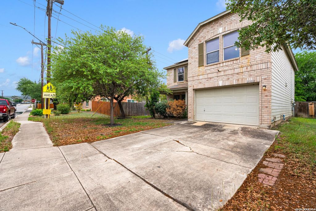 Spacious 4-bedroom, 2.5-bath two-story home featuring two living areas plus a game room, perfect for flexible living and entertaining. Situated on a near-corner lot with mature trees, this property offers great curb appeal and outdoor space. Interior features include an open floor plan with polished wood flooring on the main level, and all bedrooms conveniently located upstairs, including the primary suite. Additional highlights include owned solar panels and a Lifetime weatherproof storage shed. Sold as-is. HVAC is not operational. Buyer to perform all due diligence. Great opportunity for investors or buyers looking to add value!