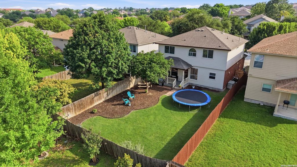 Beautifully updated 4-bedroom, 2.5-bath home in the highly desirable Alamo Ranch community. Ideally located within walking distance to the neighborhood amenity center and elementary school. Interior features include no carpet with laminate wood flooring installed throughout in 2025, fresh interior paint, and new lighting fixtures throughout, creating a clean, modern feel. Functional floor plan with spacious living and dining areas and an oversized pantry, perfect for everyday living and entertaining. Step outside to an absolutely gorgeous backyard with ample space to host, relax, and enjoy outdoor living. Additional upgrades include a water softener installed in 2024. Conveniently located near Alamo Ranch shopping, dining, and entertainment with easy access to major highways. Move-in ready and a must-see.