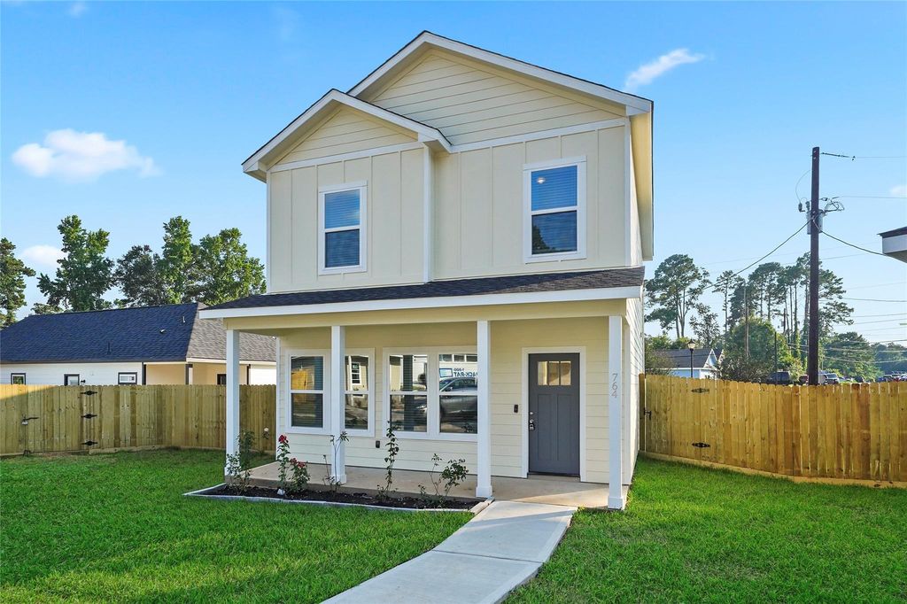 Welcome to this stunning home in a charming neighborhood. Step onto the covered front porch and enter a beautifully designed open floor plan. The spacious kitchen features 42” cabinets, stainless steel appliances, and a convenient pot filler. Enjoy upgraded tiles and laminate flooring, along with ample storage space throughout. Unwind in the luxurious primary suite with a standalone tub, double sink vanity, frameless shower glass door, and rain shower head. Outside, a fully fenced large lot awaits. Close to shopping, dining, and all the amenities of Lake Conroe. Visit today to experience the elegant finishes and modern amenities of this beautiful property.