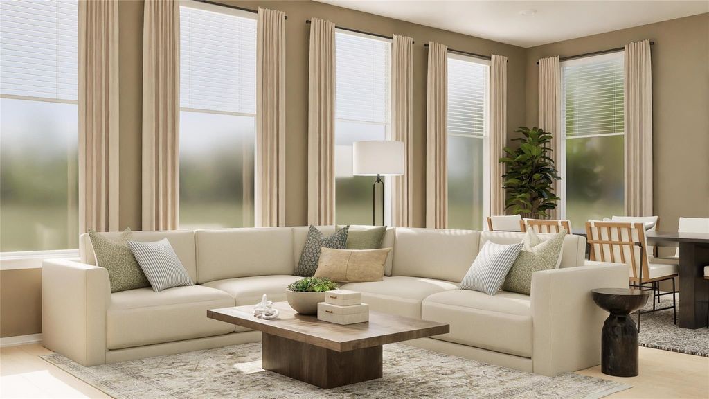 The Astoria Floor Plan - This new single-story home features two bedrooms and a full bathroom upon entry with a third bedroom tucked away to the side off the foyer. An open layout blends the kitchen, living and dining areas for simple transitions and everyday multitasking, and an adjacent patio provides year-round outdoor entertainment and leisure. A luxurious owner’s suite completes the home, complete with a spacious bedroom, spa-inspired bathroom and generous walk-in closet. The completion date, prices and features may vary and are subject to change. Please verify with Lennar directly. Photos are for illustrative purposes only.