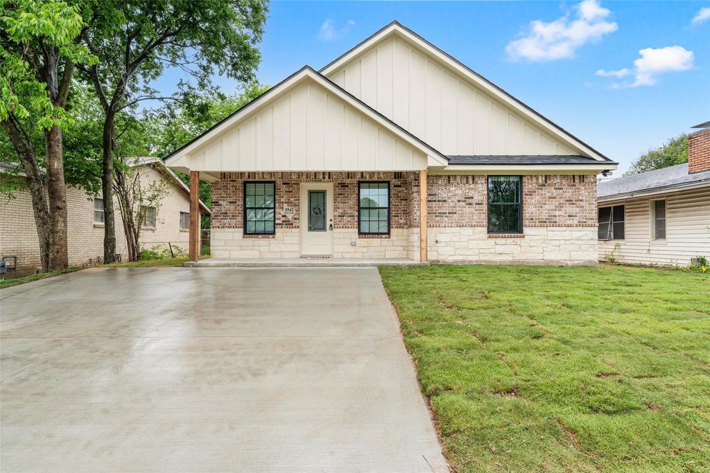 Welcome to this stunning brick and stone new construction in the heart of Waco! Perfectly located near grocery stores, restaurants, and schools, this home offers both convenience and modern comfort. From the moment you arrive, you’ll be greeted by a freshly paved driveway and a beautifully sodded front yard, along with a spacious covered patio that adds to the home’s inviting curb appeal. Step inside to discover an open-concept layout filled with natural light and enhanced by recessed lighting throughout. The living room serves as a cozy focal point, featuring a sleek electric fireplace and stylish vinyl flooring that flows seamlessly through the entire home. The kitchen is designed to impress, showcasing quartz countertops, brand-new appliances that will convey with the sale, a large island with bar seating, and a dedicated dining area highlighted by decorative lighting. The spacious primary suite offers a relaxing retreat, complete with a luxurious ensuite bathroom featuring dual vanity sinks, elegant touch-screen mirrors, and a marble shower tub combo. On the opposite side of the home, you’ll find two additional bedrooms and a well-appointed guest bathroom with quartz countertops, a marble shower tub combo, and another modern touch-screen mirror. Step outside to enjoy the covered back patio overlooking a fully fenced wooden backyard with fresh sod—perfect for relaxing or entertaining. This thoughtfully designed home blends style, comfort, and functionality—come make it yours!