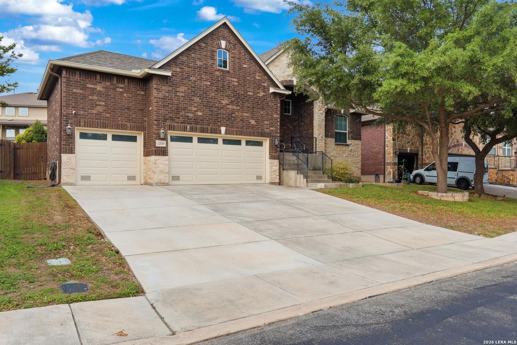 Nestled in the highly desirable gated community of Summit at Alamo Ranch, this exceptional property offers the ideal blend of comfort, style, and convenience. Located just minutes from HEB Plus, Loop 1604, and a wide variety of shopping and dining, everyday living is effortless. From the moment you arrive, the curb appeal makes a lasting impression. This four-sided masonry home showcases a beautiful blend of brick and stone, a spacious three-car garage, and an extended driveway with ample parking. A charming front patio invites you to enjoy peaceful mornings or relaxing evenings. Step inside to soaring 12-foot ceilings that set the tone for the open and airy layout. Natural light pours in through expansive windows and panoramic sliding glass doors that fully open, creating a seamless indoor-outdoor experience. French oak flooring flows throughout the main living areas, with luxury vinyl plank in the guest bedrooms, offering a completely carpet-free home. The living room is both spaciou