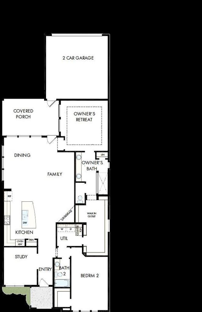 Blue Ember is designed to feel calm, airy, and quietly refined, with soft blue-gray accents layered over light flooring and crisp white cabinetry. Natural light fills the open-concept living space, creating an easy flow from the kitchen to the family and dining areas. At the center, the streamlined kitchen offers plenty of room to cook, gather, and connect, while the enclosed study provides a flexible space for work, guests, or a private retreat. Out back, the extended covered porch invites you to slow down and enjoy relaxed evenings or casual weekends outdoors. The Owner’s Retreat offers a peaceful escape, featuring a spacious layout, a large walk-in shower, and a walk-in closet built for everyday ease. Subtle gold and black fixtures add contrast and polish, bringing a modern edge to the home’s light, soothing palette.