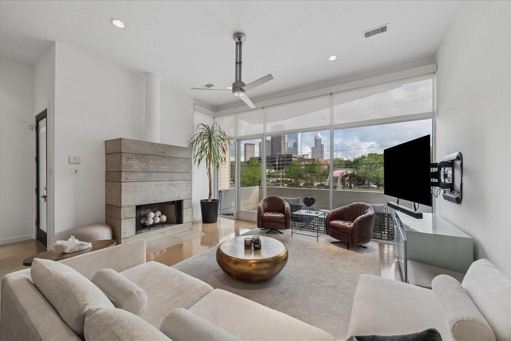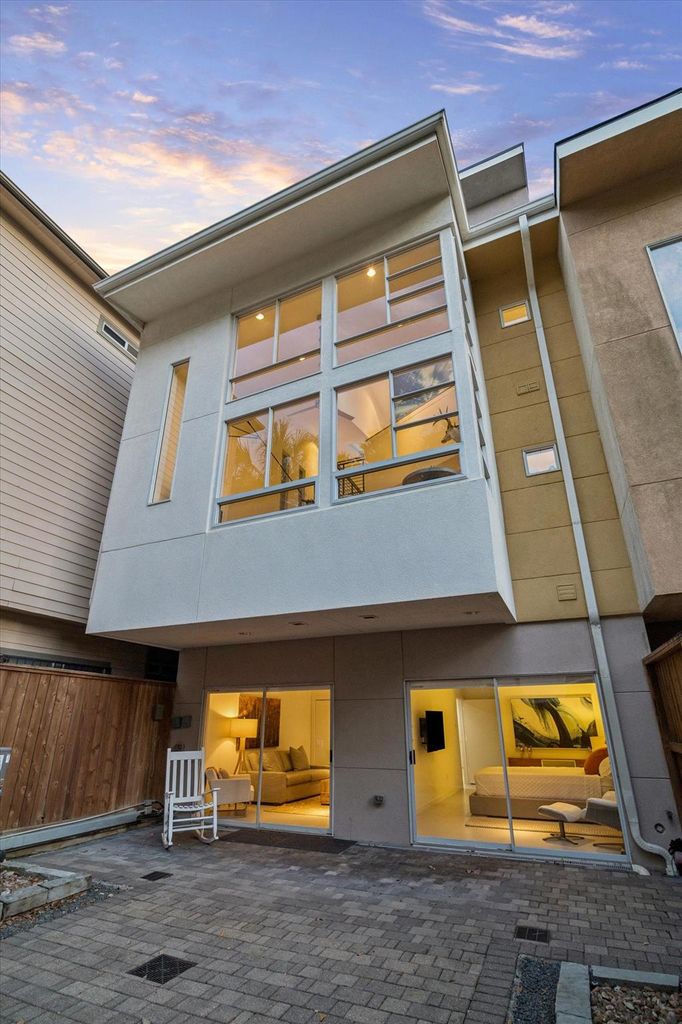 A rare, one-of-a-kind offering in Houston’s historic 6th Ward district, walkable to Buffalo Bayou, this architecturally driven residence blends design integrity with a refined, wellness-inspired aesthetic. Originally developed by MC2 Architects and thoughtfully reimagined, the home unfolds as a collection of intentional spaces defined by light, scale, and material. Soaring ceilings and an open-concept layout create a striking yet inviting great room with seamless flow between living, dining, and kitchen. The kitchen offers quartz surfaces, refreshed cabinetry, and a dedicated coffee and juice bar. Enjoy a private gated driveway and entry, two-car garage, and spacious backyard—rare for the area. Two private balconies capture downtown skyline views, with close proximity to restaurants, bars, and downtown amenities. A versatile loft offers a quiet retreat for work or relaxation. Primary suite includes a dual-entry shower, soaking tub, and elevated finishes. No flooding, including Harvey.