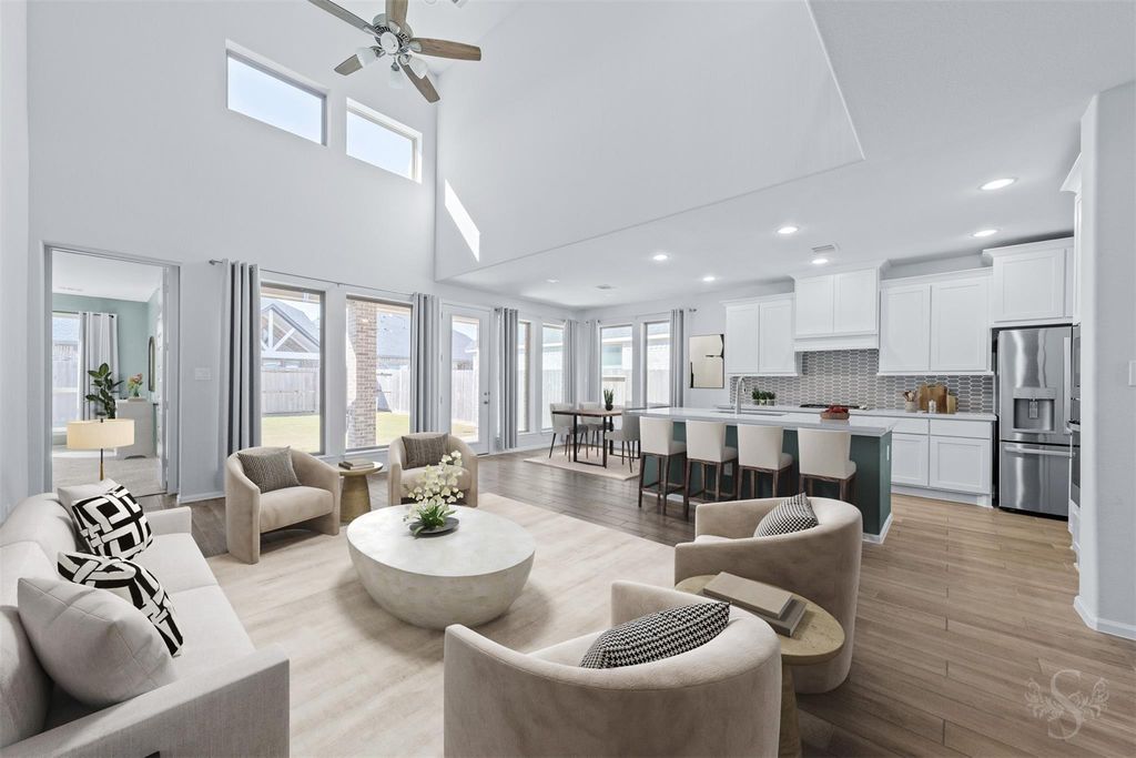 Magnificent Perry Home built in 2023 offering 4 bedrooms, 3.5 baths and 2 car garage, showcasing elegant finishes & thoughtfully designed living spaces. Grand entry w/soaring ceilings, beautiful wood-look tile flooring & abundant natural light that creates a bright, welcoming atmosphere. Private study has double doors for a quiet retreat. Impressive family room features 2 story ceilings & wall of windows. Open to the kitchen & dining area, this seamless layout creates an inviting setting for everyday living & entertaining. Gourmet kitchen boasts sleek white cabinetry, SS appliances, large granite island & walk-in pantry. The adjoining dining area provides a comfortable space for casual meals or gatherings w/family & friends. Primary suite features a spa-like bath w/soaking tub & large walk-in closet. Upstairs, you’ll find a game room offering space for relaxation or entertainment. Step outside to enjoy the covered patio & backyard space, perfect for outdoor dining & relaxing evenings.