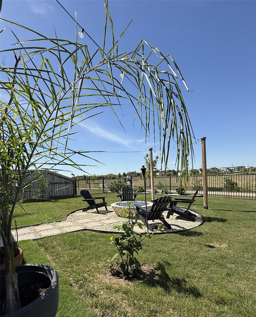 Your new home has 5 bedrooms, 3 1/2 baths, office, upstairs game room/loft and captivating full water views of Waterhole Pond. Better than new and move-in ready with all window coverings, remote controlled window shades in downstairs living area, upgraded iron stair railings, kitchen cabinets extended to ceiling, classic LVP flooring downstairs, upgraded carpet in bedrooms, extended covered patio, fire pit, 24 kw Generac, water softener, security system, graveled side yards. Living in Sunset section of Cross Creek West allows full use of all Cross Creek Ranch amenities (pools, fitness centers, parks, disc golf course, tennis & pickleball, splash pad, classes, events) and quick access to FM 359. French doors lead into office. Large utility room accessible from huge primary closet. Impressive entry chandelier and pretty chandelier in upstairs bedroom. Two 40 gallon hot water heaters, full yard irrigation system, gutters, oversized 2 car garage. Front porch. All this is waiting for you.