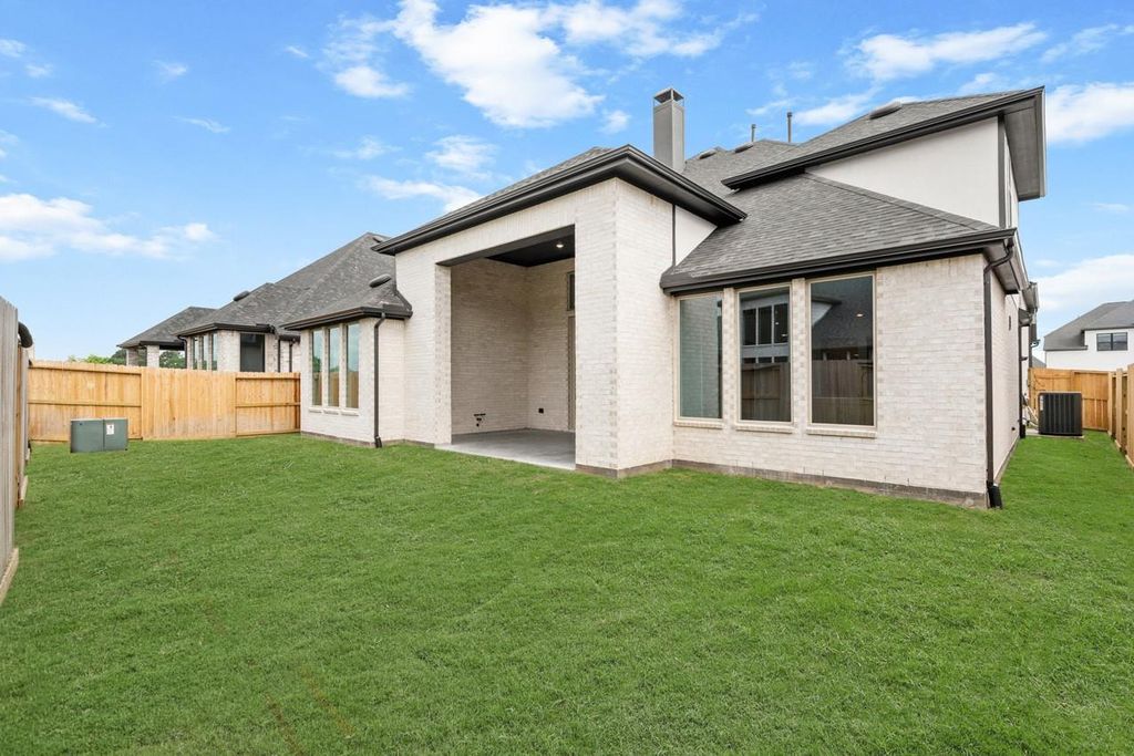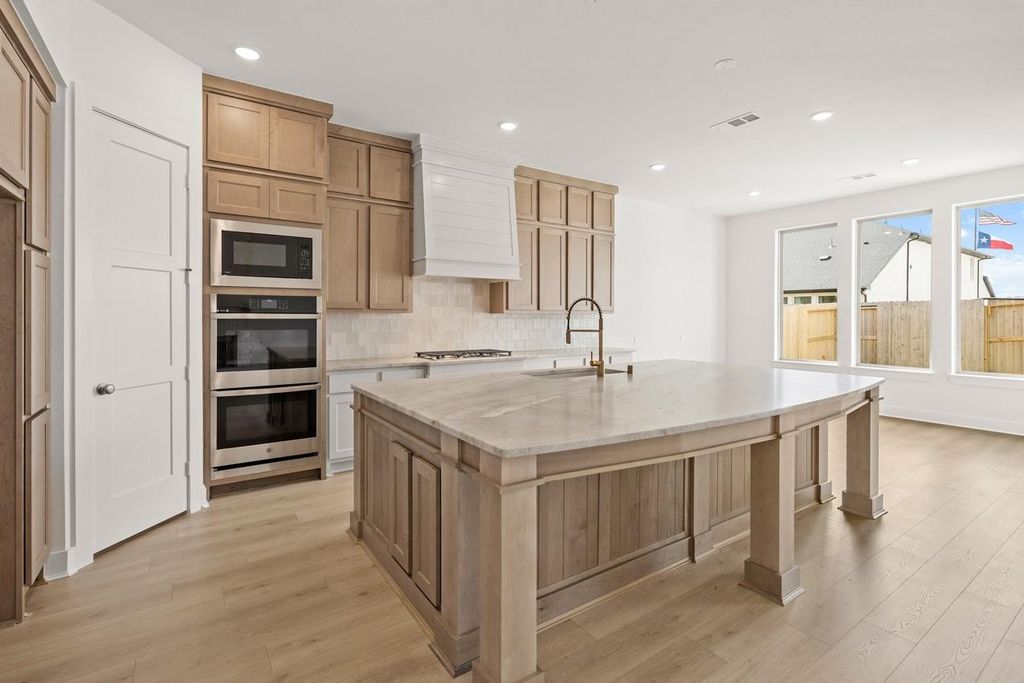 Beautiful move-in ready home offering 5 spacious bedrooms and 4 full baths, thoughtfully designed for both comfort and entertaining. This home features a desirable open-concept layout with a stunning farmhouse-style kitchen that flows seamlessly into the main living area. An entertainment room provides the perfect space for movie nights or hosting guests. The extended primary suite offers a private retreat, complete with a spa-like bathroom featuring a freestanding tub. Enjoy seamless indoor-outdoor living with sliding glass doors that lead to an extended outdoor living area, ideal for entertaining year-round. With modern finishes and functional design throughout, this home is the perfect blend of style, space, and convenience.