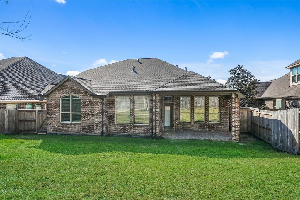 Welcome home to this beautiful 1.5-story in the sought-after Estates of Wedgewood Falls near Lake Conroe, located in a scenic former golf course community with walking paths throughout. This well-designed floor plan features 3 bedrooms downstairs plus a private upstairs bedroom with full bath, a spacious living area with gas fireplace, and a dedicated home office near the primary suite. Enjoy granite countertops, abundant cabinet space, recent updates including roof, paint, carpet, and a private backyard with no rear neighbors. Step outside to enjoy the covered patio and private backyard with no rear neighbors, offering peace, privacy, and space to unwind. Additional highlights include a 3-car garage, excellent layout for entertaining, and zoning to Conroe ISD schools. Enjoy the perfect blend of comfort, convenience, and natural beauty — schedule your private showing today!