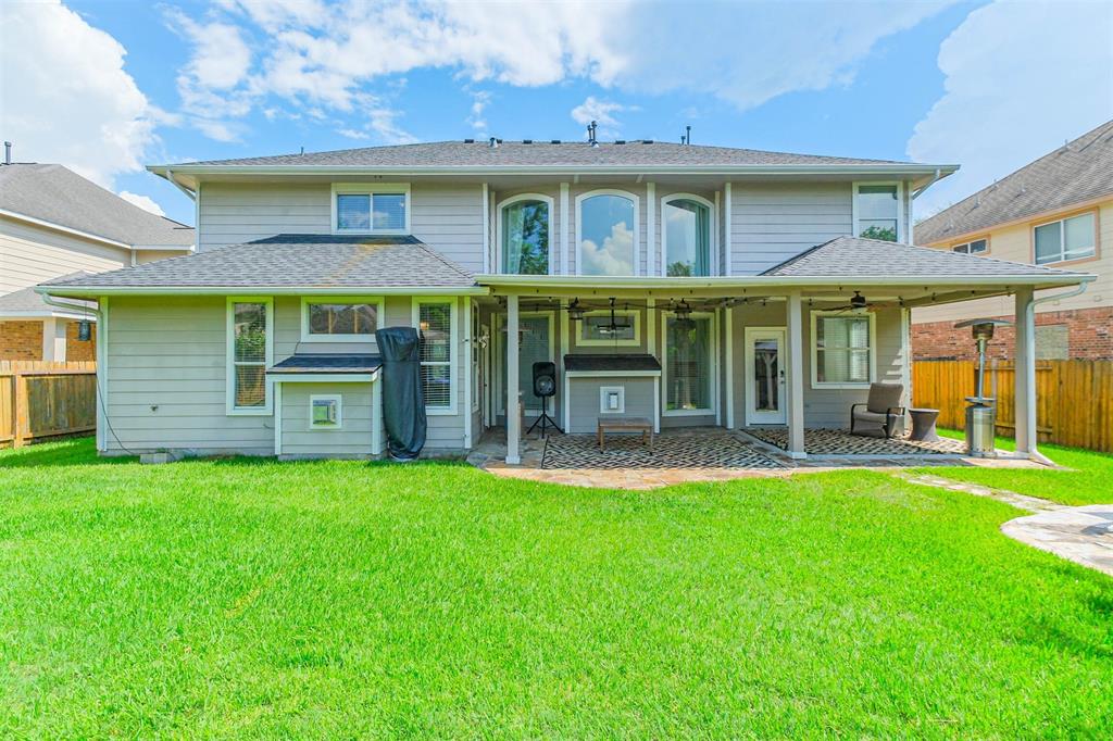 Beautiful 5-bedroom, 3.5-bath home in the desirable Summerwood subdivision along the shores of Lake Houston. This spacious, well-designed home features a media room, new roof (2022), and recently replaced A/C units and water heaters. One bedroom with French doors makes a perfect home office or guest space. The warm, functional kitchen offers rich wood floors, white cabinetry, granite countertops, a central island with bar seating, stainless steel appliances, a double sink with modern faucet, and stylish pendant and under-cabinet lighting. The updated primary bath is a luxurious retreat with a freestanding tub beneath a glass block window, enclosed subway-tile shower, wood flooring, white cabinetry, black granite counters, and elegant lighting. Summerwood is a master-planned community surrounded by greenery, walking trails, lakes, and well-maintained parks. Enjoy peaceful surroundings, green spaces, and convenient access to shopping, dining, and top-rated schools.