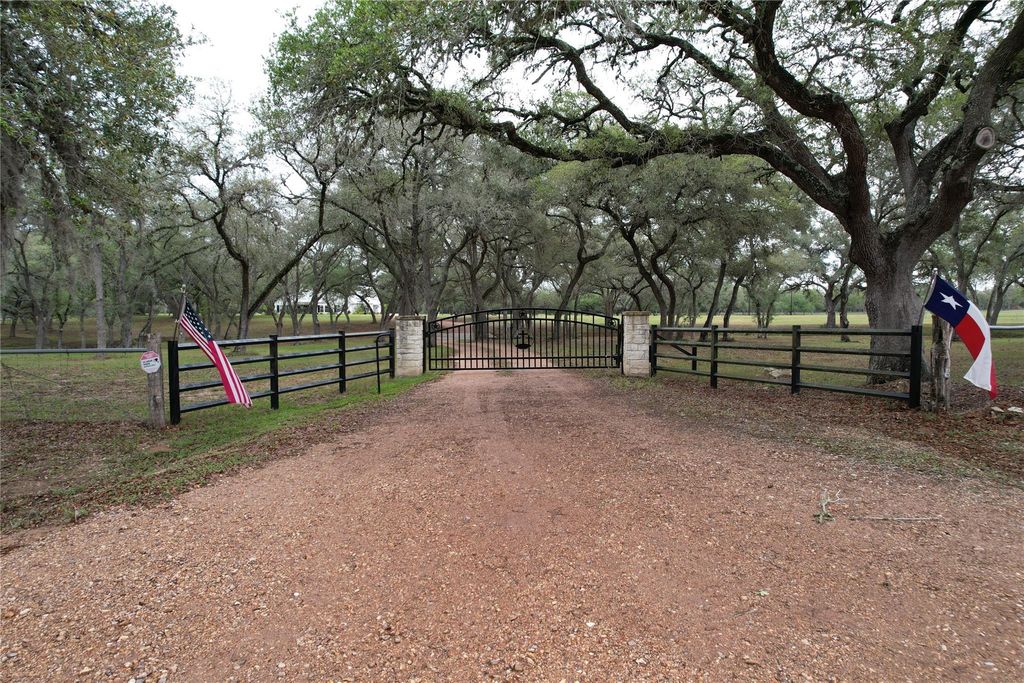 Show stopper! This home's recent renovations have not only expanded its footprint, they have added great charm, style, and functionality. A tremendously grand entertaining/dining area, primary suite with gigantic ensuite, and an inviting walk out porch were seamlessly added in 2022. The lavish landscaping was the latest touch. There are two, possibly three, bedrooms downstairs along with one upstairs with half bath. High grade vinyl planking throughout. The split floor plan allows for privacy and comfort for all with the primary secluded toward the serene back of the tract. This almost 29 acre tract is rolling and tree filled with a more dense concentration along the northern creek boundary. Loads of deer, turkeys, birds, etc to enjoy while on one of the many porches. Completely fenced and cross fenced with an electric gate entry. The perfect mix of seclusion and ease with Ezzel Elementary, Hallettsville, and Victoria just minutes away.