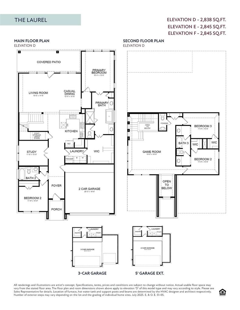 Discover the epitome of refined living with the Laurel, a stunning 2,838-square-foot two-story home. A grand foyer welcomes you, leading to a private study perfect for work or relaxation. The main floor offers open-concept living and dining areas, with a well-appointed kitchen flowing into the luxurious primary suite, complete with an expansive walk-in closet. Upstairs, you’ll find two additional bedrooms, a spacious game room, and a convenient powder bath. The covered patio provides the perfect setting for outdoor enjoyment. Thoughtfully designed, the Laurel combines modern amenities with timeless elegance, offering the ultimate blend of comfort and sophistication. Measurements are deemed accurate, but if important, please verify. Some photos may be conceptual or representative and final home may vary from images. Finishes, colors, plan are subject to change.