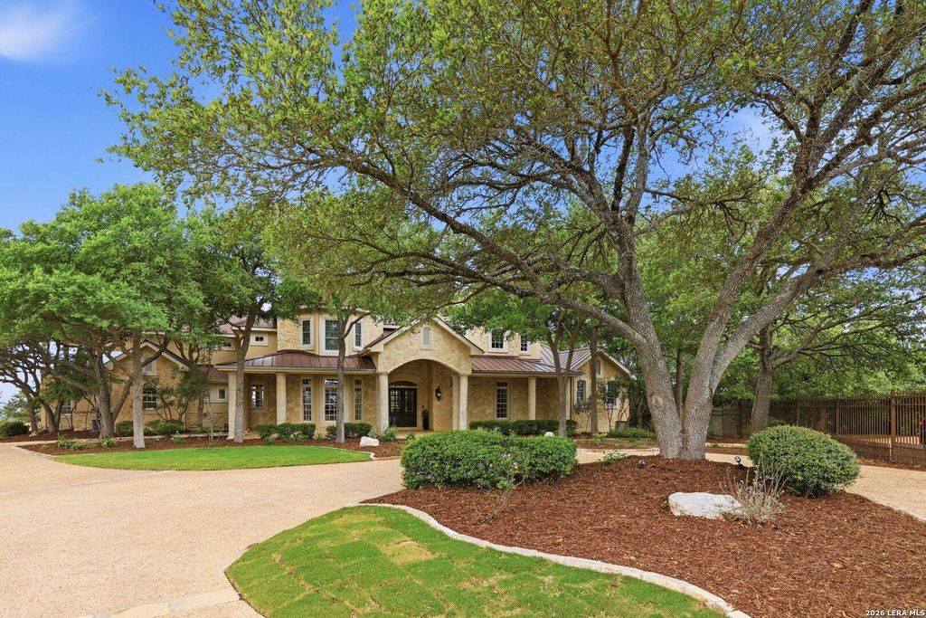 Gated. Private. Unforgettable. Perched on 4.43 pristine acres in a private cul-de-sac, this 6,297 SF showpiece estate delivers a lifestyle most only dream about - complete with panoramic views and Six Flags fireworks from your own backyard every single night. From the moment you pass through the private gate, everything signals something exceptional. A side-entry 3-car garage with abundant storage, a metal roof, mature trees, and stunning exterior lighting set the tone. Inside, three fireplaces anchor the living room, family room, and primary suite. Plantation shutters. Central vacuum. Every finish chosen with intention. The island kitchen is a chef's masterwork: 6-burner Viking gas range, double ovens, built-in GE Cafe refrigerator, double-drawer dishwasher, granite counters with Chicago brick backsplash, wine refrigerator, large walk-in pantry, and a dedicated butler's pantry. Storage and counter space that will make every cook feel at home. The primary suite is its own worl