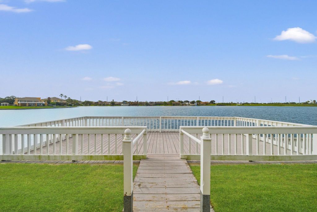 Wow! A rarity is this one-story lakefront townhome with fantastic water view! There are two decks for your enjoyment - the front courtyard deck and the waterfront deck in back. This home has a spacious living area which flows into the kitchen and dining areas, and all three enjoy the lake views from the large expanses of windows. The primary bedroom has a private en suite bath and opens onto a private atrium. There is a large attached two car garage for added convenience. An added plus is that the complex has its own pool and enjoys the use of the Campeche Cove tennis courts.
