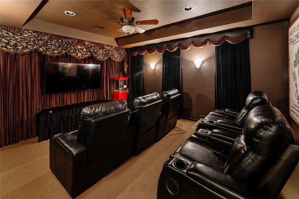 Welcome to a FULLY FURNISHED retreat in the community of Summerwood—nearly 5,000 sq ft of bold design, resort-style amenities, and unforgettable entertaining spaces. The Mediterranean-style exterior sets the stage for what lies within: soaring ceilings, rich hardwood floors, and an open layout that flows seamlessly from the chef’s kitchen—with custom cabinetry, granite countertops, and double ovens—to expansive living areas. Step outside to your backyard oasis, where the oversized pool and spa are framed by lush palms and tranquil nature reserve views. Custom water features create a mesmerizing display for both serene evenings and entertaining. The top floor is your personal entertainment complex with a hotel-style bar surrounded by arcade machines, a pinball machine, shuffleboard, foosball, and more! This level also includes a theater room for immersive movie nights and a private massage room. This is more than a home—it’s a private retreat built to entertain, impress, and rejuvenate.