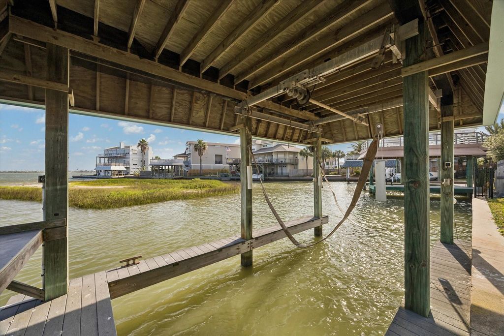 Stunning waterfront home with panoramic views, 3-4 bedrooms, 4.5 baths, and a versatile 4th bedroom or game room upstairs. Wood tile flooring, granite countertops in kitchen, large utility room, walk-in pantry, and two separate garages. Outdoor deck overlooks Gunite pool and boat house/ boat lift. Home has Legacy lift elevator. New AC, freshly painted, and ready to move in. Ideal for entertaining with open layout, natural color scheme, and tile throughout. Experience luxury living with every window offering breathtaking water views. A perfect combination of elegance and functionality in a prime location. Furnishings are available to purchase. schedule your appointment today.