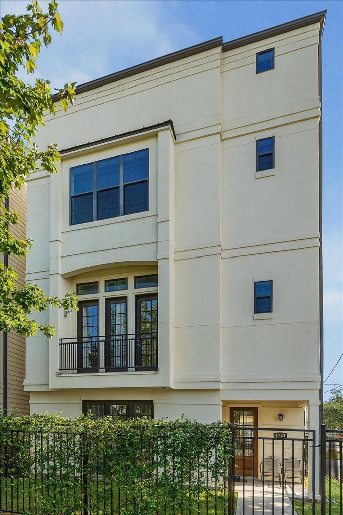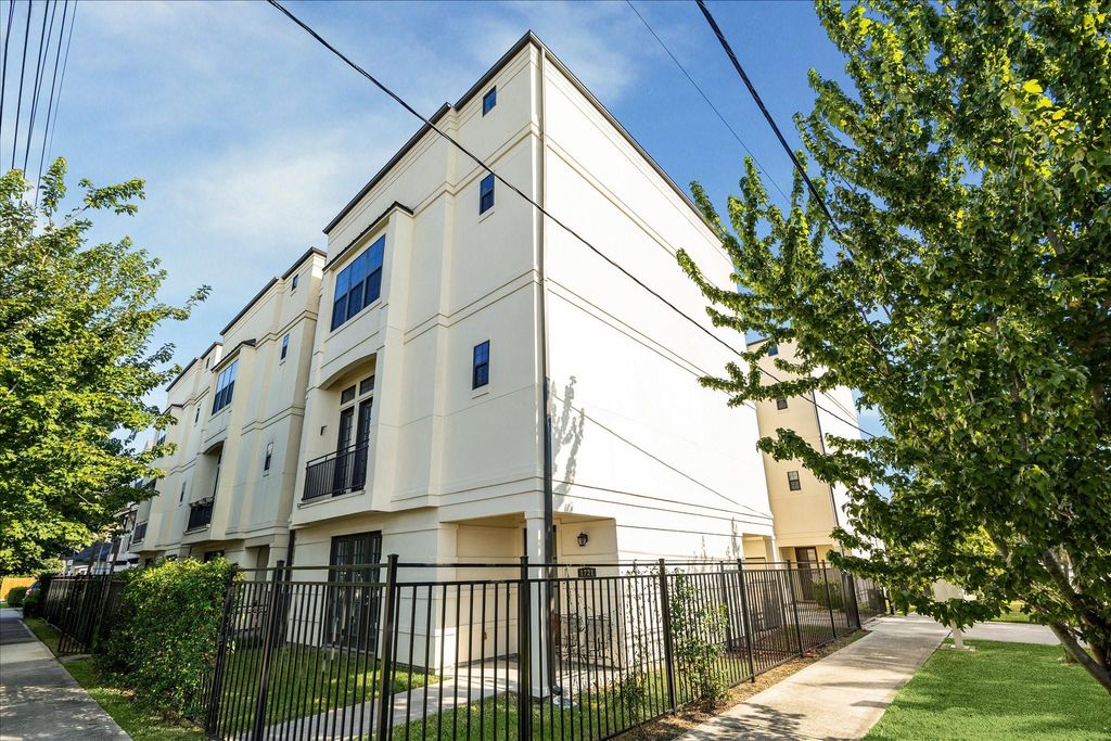 Exquisite, move-in ready Sawyer Heights former model home in gated community offers superior layout & finishes plus stunning downtown views! Corner lot with open-concept design offers abundant natural light throughout. Outdoor spaces include fenced yard & covered rooftop terrace boasting spectacular views. Upgrades include hardwood floors throughout (no carpet!), high ceilings & covered rooftop deck. Expansive open living areas with high ceilings, abundant windows & crown molding. Chef's kitchen boasts island open to living areas, high-end stainless steel appliances, soft-close drawers & large walk-in pantry. Versatile 4th floor features wet bar area & covered rooftop deck with storage. Spacious secondary bedrooms boast en suite baths, hardwood floors & large closets. Washer/dryer & stainless refrigerator included! Walking distance to hike & bike trails, restaurants & abundant amenities. Easy access to downtown, I-10 & I-45. Beautifully appointed oasis in the heart of the city!
