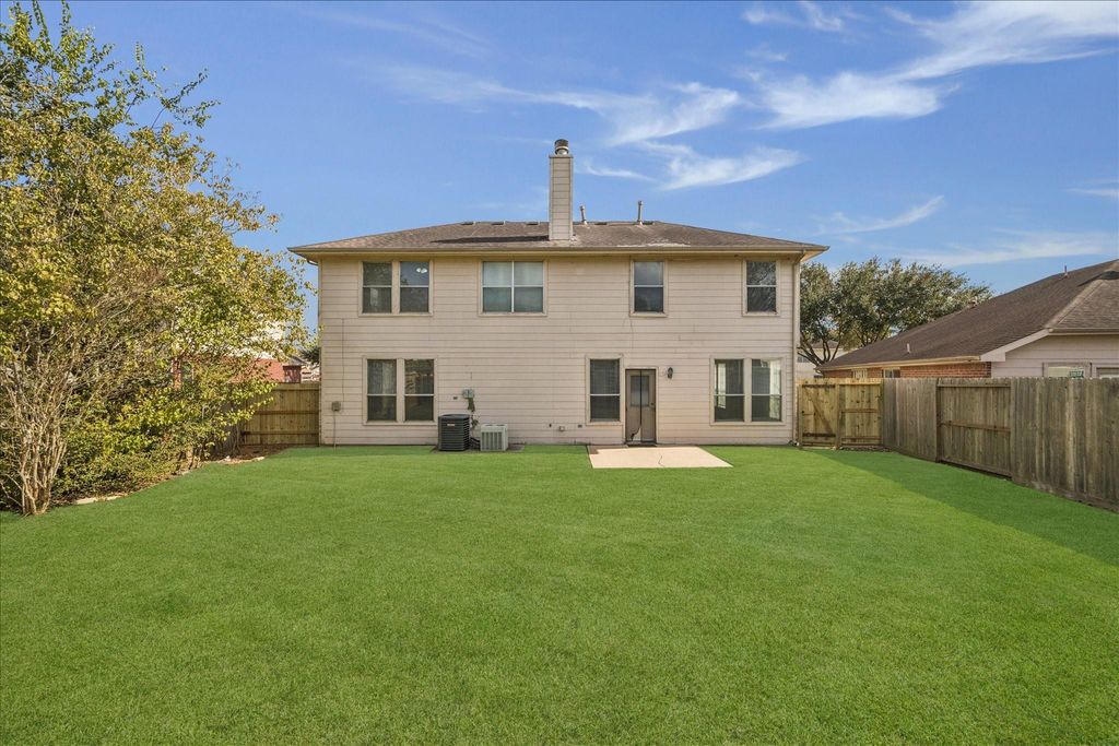 Spacious 3-Bed, 2.5-Bath Home in Riverpark Welcome to this beautifully maintained 2,349 sq ft residence in the sought-after Riverpark community. This two-story home features a bright, open layout with a living room fireplace, a large kitchen with ample cabinet space, and plenty of natural light. The upstairs primary suite offers a generous bathroom and walk-in closet, while two additional bedrooms share a full bath. Outside, enjoy a well-sized, fenced yard on a 7,765 sq ft lot — ideal for family gatherings or relaxing. Conveniently located near top Sugar Land schools, shopping, parks, and major highways.