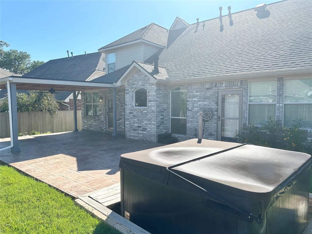 located in Villages of Northgate Crossing. Walk in and be greeted by the entry and dining room. Continue past the dining room and discover the laundry room. Tile flooring is featured throughout the first floor. The garage has epoxy floors and a water softener. The kitchen features a gas stove, new stainless steel refrigerator, new dishwasher, new fixtures, soft-close drawers, an ice-maker, and wine fridge. The home features double-paned windows, a gas fireplace, vaulted ceilings. The primary bedroom has new carpet and has a door that leads out to the backyard with a new hot tub. The primary bath features a steam shower, an abundance of storage in the closet and a linen closet. Continue upstairs that features an oversized game-room with built-in shelving, attic space with great storage. Secondary bedrooms are oversized with spacious closets. The backyard has a covered patio, grassy areas, and 2 new A/C units.