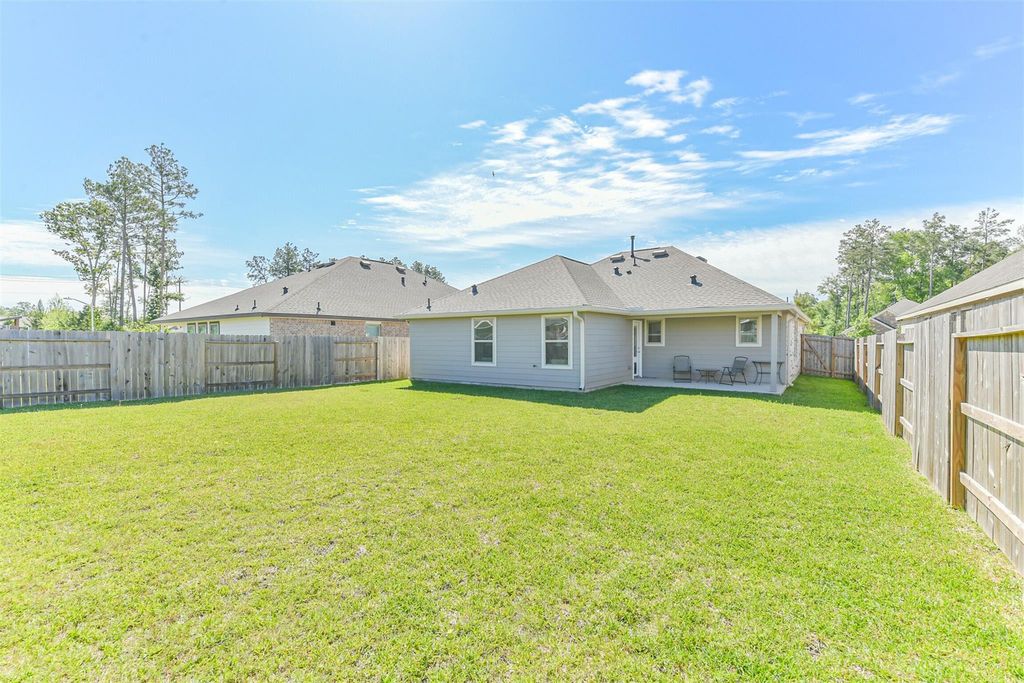 Stunning one story home in Ladera Creek, located minutes away from The Woodlands and just 18 minutes away from The Woodlands Mall! This home offers an open-concept layout that’s ideal for modern family living. The spacious kitchen overlooks the family room and attached covered patio, ready for indoor-outdoor entertaining and features a large island, quartz countertops, cabinets galore, and stainless steel appliances. Spacious primary bedroom with en-suite bath and walk-in closet that is conveniently connected to the laundry room. The large backyard is ideal for all your family needs and furry babies. Refrigerator, washer and dryer are included. Enjoy the many neighborhood amenities which include walking trails, playground, picnic areas. The neighborhood sits near Carl Barton Jr. Park, with easy access to shopping, dining, and major roads like Loop 336 and I-45. Zoned to highly acclaimed Conroe ISD schools.